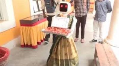 मतदान केंद्र पर AI रोबोट ‘नीला’ का स्वागत, मतदाताओं के बीच बना आकर्षण