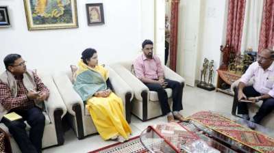 भोपाल : महिला-बाल विकास मंत्री निर्मला भूरिया से गुरुवार को भोपाल में उनके निवास पर राष्ट्रीय खिलाड़ी और सोलो साइक्लिस्ट जिला राजगढ़ की कु. आशा मालवीय ने सौजन्य भेंट की।