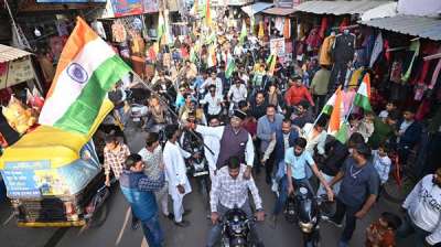 76वें गणतंत्र दिवस की पूर्व संध्या पर मंत्री सारंग के नेतृत्व में निकाली गई भव्य तिरंगा यात्रा