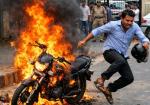 जिला न्यायालय के पास चलती बाइक बनी आग का गोला, मचा हड़कंप
