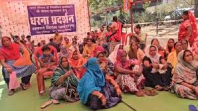 वेतन बकाया से नाराज कर्मचारी, निगम कार्यालय के सामने किया विरोध प्रदर्शन