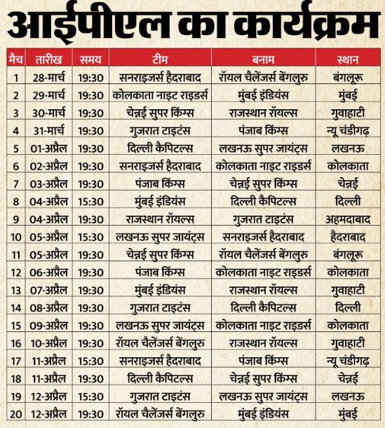 आईपीएल 2026 का कार्यक्रम दो भागों में जारी किया गया है। पहले 20 मैचों का शेड्यूल जारी हुआ था और अब लीग चरण के शेष 50 मैचों का कार्यक्रम घोषित किया गया है। इसका कारण पांच राज्यों में होने वाले विधानसभा चुनाव हैं। असम, पुडुचेरी, केरल, पश्चिम बंगाल और तमिलनाडु में अगले महीने विधानसभा चुनाव होने हैं। चुनाव के नतीजे चार मई को जारी होंगे। बीसीसीआई ने इन राज्यों में चुनाव घोषित होने के बाद लीग चरण का पूरा कार्यक्रम घोषित किया है।