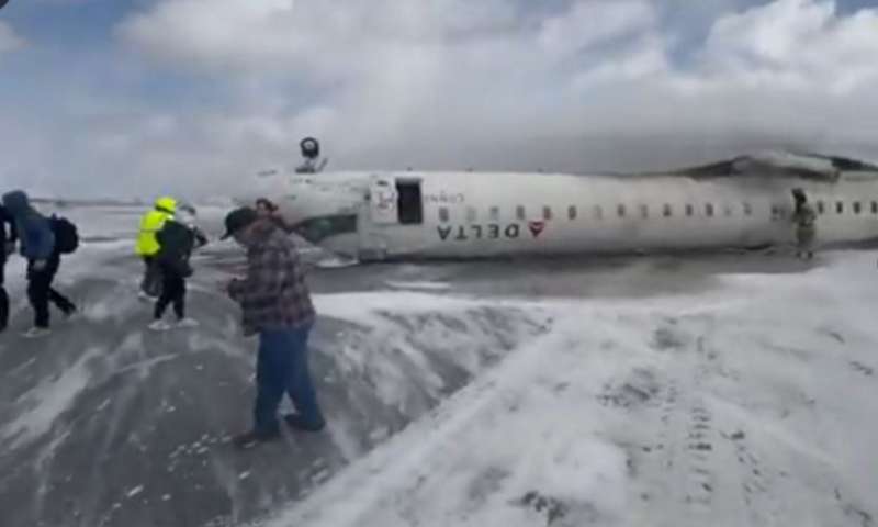 टोरंटो में डेल्टा एयरलाइंस का विमान क्रैश, लैंडिंग के दौरान पलटा