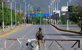 इस्लामाबाद का सबसे व्यस्त व्यावसायिक क्षेत्र 'ब्लू एरिया' वर्तमान में सन्नाटे की चपेट में है।
