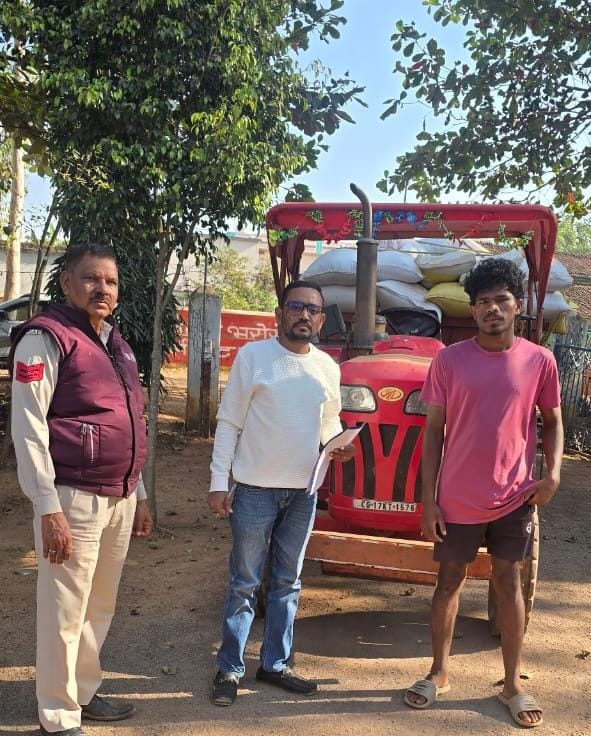 बस्तर के मारीगुड़ा में 40 क्विंटल अवैध धान सहित ट्रैक्टर जब्त