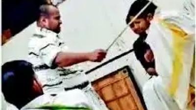 वेद विद्यालय में शिक्षक की पिटाई, छात्र को छड़ी से पीटा; CCTV में कैद