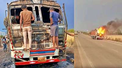 मध्य प्रदेश-राजस्थान बॉर्डर पर भीषण सड़क हादसे, युवक जिंदा जला