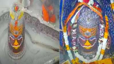 गर्म जल, पंचामृत से स्नान के बाद बाबा महाकाल को अर्पित की गई आंकड़े की माला