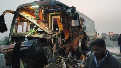 हाईवे हादसा: डंपर और टूरिस्ट बस की भिड़ंत, 1 की मौत कई घायल