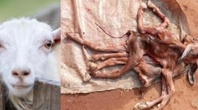 सूरजपुर में कौतूहल: 8 पैर और 3 कान वाले बकरी के बच्चे को देखने लगी भीड़