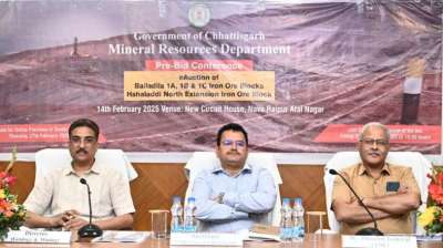 रायपुर : संचालनालय भौमिकी एवं खनिकर्म, छत्तीसगढ़ द्वारा बस्तर के बैलाडीला क्षेत्र के लौह अयस्क ब्लॉकों की नीलामी को लेकर आज नवा रायपुर के न्यू सर्किट हाउस स्थित कन्वेंशन हॉल...